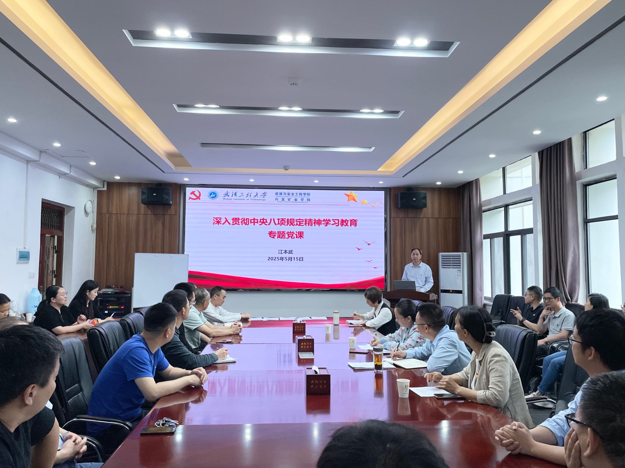 本网讯(通讯员 黄橙)按照公司深入贯彻中央八项规定精神学习教育有关工作安排,5月15日下午,公司党委书记江本武为公司全体教职工讲授深入贯彻中央八项规定精神学习教育专题党课,公司学习教育工作专班成员机关党委书记郭昕、组织员刘汉红参加了本次专题党课的互学互鉴。